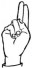 На ћирилици написано КАЋА БРАТИЧАНИН састоји се из 14 слова [?]. Исписано ћириличном једноручном азбуком за глувонеме: